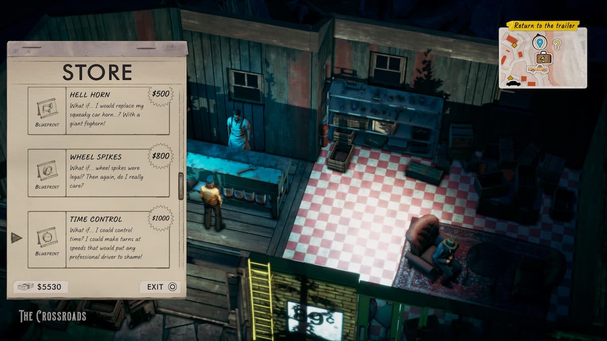Progression systems exist: you collect red crates for crafting materials to upgrade your truck with gadgets (airbags, wheel spikes, horn, winch). Sadly, materials are rare, mandatory mission variants lock gadget use to scripted points, and the fun upgrades show up too late—or not at all if you're stingy with resource farming.