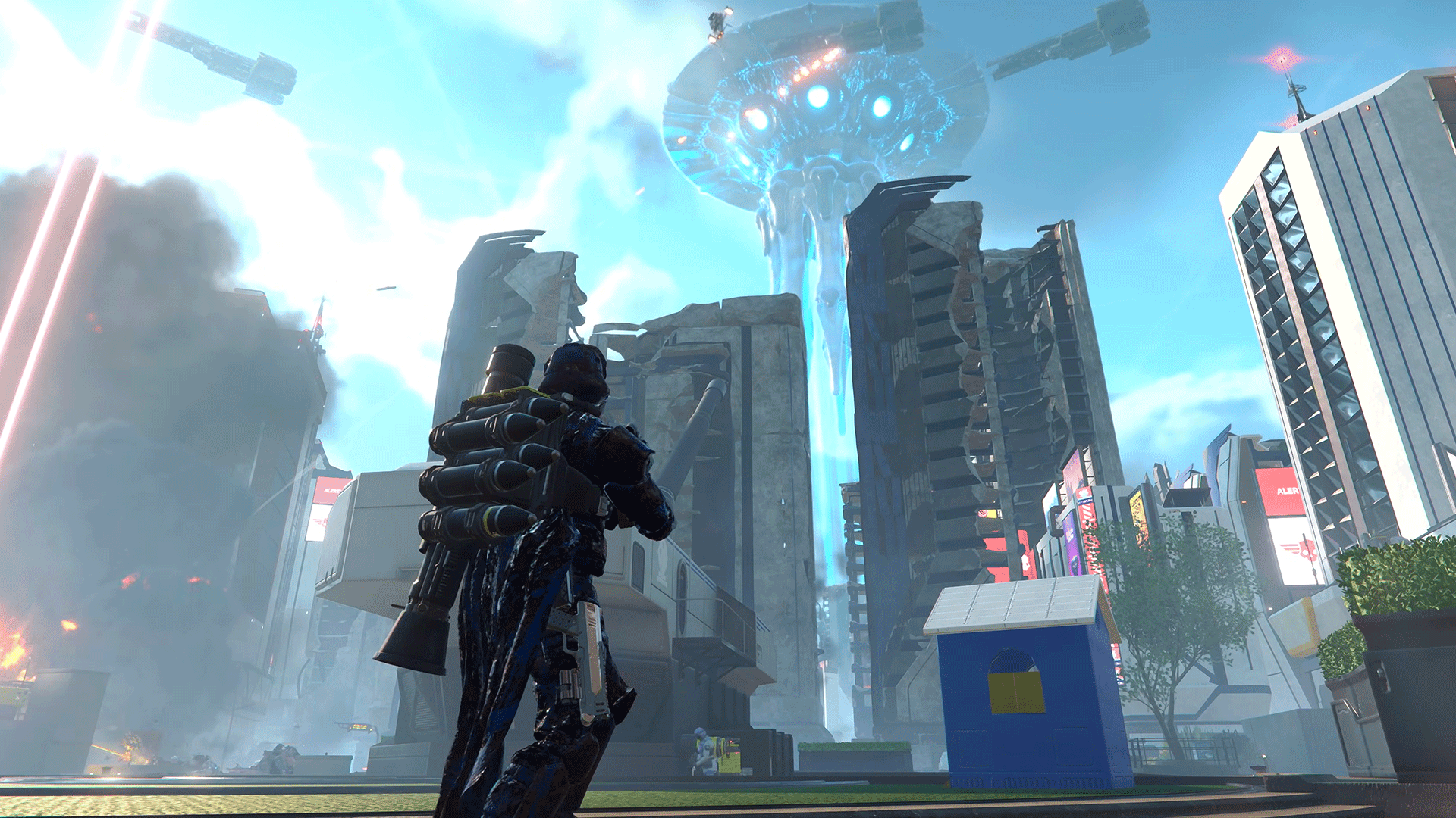City fighting changes the rhythm. Sight lines are tighter, vertical clutter breaks up bug and bot swarms, and missions often revolve around powering up those giant defense cannons while fending off Illuminate “squids.” It’s an excellent shake‑up: still Helldivers, but with more rescue‑ops chaos and less wide‑open kiting. The SEAF squads are a neat flavor touch (and real backup), and objectives ebb and flow like a tug‑of‑war rather than a straight‑line sprint.