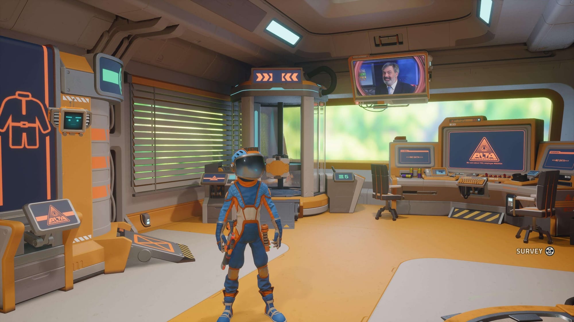 You’re a disposable cog in a galaxy‑spanning megacorp. Having been “made redundant and abandoned” on the far edge of space (corporate speak rarely sounds this cheerful), you rummage through alien biomes to gather resources, catalog wildlife, craft upgrades—and eventually stick it to your former employer. The tone is satirical but focused: think fake infomercials, hostile HR memos, and a habitat you can decorate with a level of pride that would worry an interior designer. The official pitch emphasizes scanning plants and creatures, spelunking through caves, lassoing wildlife into holding pens, and turning your Space Trailer into a shrine of bad taste, all while upgrading a Swiss‑army arsenal of mobility tricks.