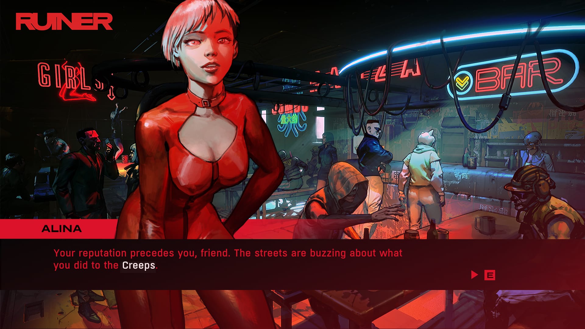 Ruiner is a ruthless top‑down action game where split‑second aggression meets surgical precision. Masked, mute, and manipulated, you carve through the city of Rengkok to rescue your brother, chaining dashes, parries, and gadget bursts against crowds that punish hesitation. Every encounter is a kinetic puzzle: deploy shields, stun drones, and cybernetic hacks to create windows for brutal executions. It’s stylish without being hollow; the interface slices across the screen like a warning siren, while a pounding synth soundtrack drives your spree. Boss fights are readable yet relentless, asking you to learn patterns, swap loadouts, and commit. Moment‑to‑moment, the game nails that cyberpunk sensation of being overclocked and overmatched, surviving by audacity and grit. The story is lean and mean, sketching a world of corporate sadists, sleazy fixers, and desperate strivers in vivid strokes. When you finally tear through the last arena, the aftermath lingers like an afterimage on your retinas. You’ll want another run to perfect every messy encounter. Soon.