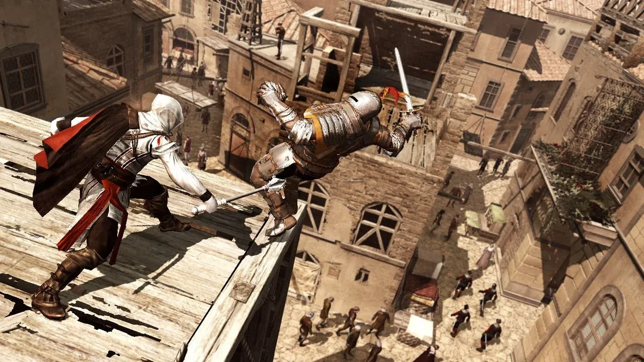 Ezio Auditore’s debut is the moment Assassin’s Creed became a phenomenon. Renaissance Italy—Florence, Venice, and Tuscany—burst to life with social stealth, economic upgrades, and a far more charismatic hero than the original’s stoic Altair. AC II perfected the franchise’s core loop: stalk, study, strike, and vanish into a living crowd. It layered in gadgetry (thanks, Leonardo), smoother free‑running, and a playful, Da Vinci‑tinted tone that made its conspiratorial plot sing. Most importantly, it made you feel like an Assassin long before stat trees and loot tiers ever entered the conversation. Even today, Ezio’s coming‑of‑age blend of revenge and responsibility is the series’ emotional north star, and its city design still makes rooftop navigation feel like a dance. If you want to understand why this brand endured, start here—then watch how later entries iterate on its blueprint.